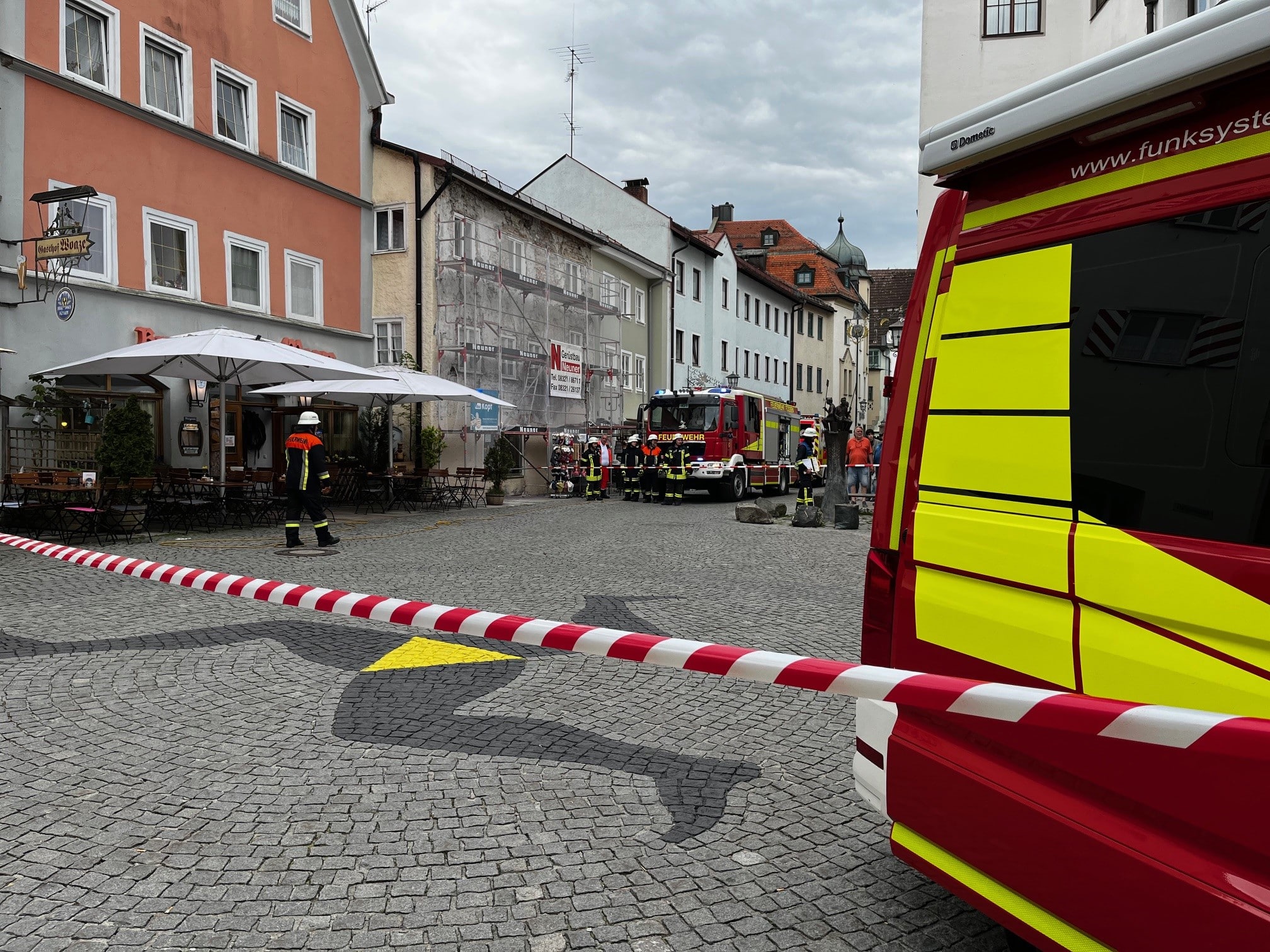 Aus einer defekten CO² Flasche ist Gas entwicken. Die Gaststätte und der angrenzende Schrannenplatz wurde von uns geräumt. Die Flasche wurde von uns gesichert und die Räumlichkeiten im Gebäude belüftet.