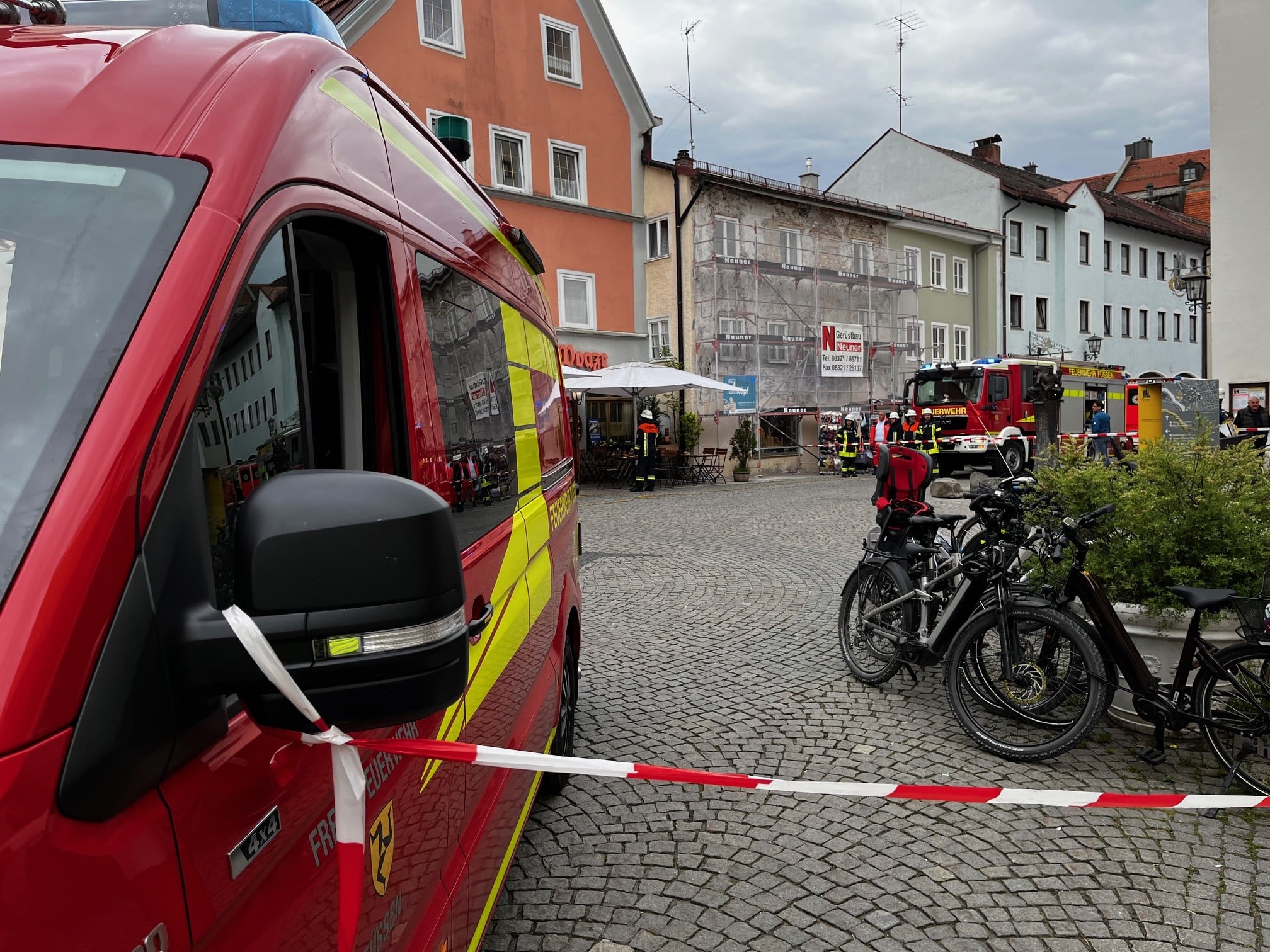Beim Füssener Himmelfahrtsmarkt ist ein Fahrzeug in Brand geraten. Ausgelöst wurde das Feuer durch eine eingeschaltene Herdplatte im Fahrzeug. Der Brand wurde durch einen Ersthelfer mit einem Pulverlöscher gelöscht. Wir öffneten im Fahrzeug den Deckenhimmel mit einer Säbelsäge und kontrollierten ob noch Glutnester vorhanden waren. Ein weiteres zusätzliches Eingreifen war nicht mehr erforderlich.