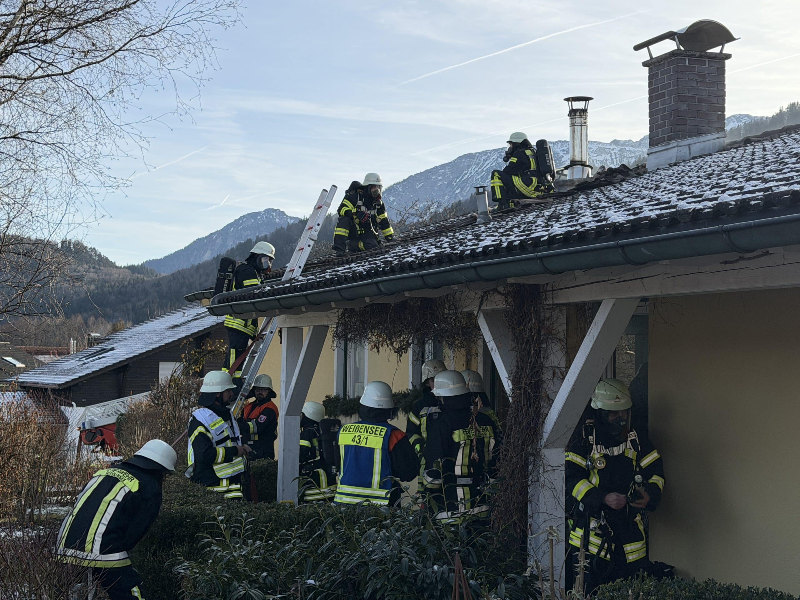 Unser dritter Brandeinsatz am Neujahrstag 2026. Neben der Feuerwehr Weißensee wurden wir zu einem Dachbrand an einem Kamin alarmiert. Beim Eintreffen der Einsatzkräfte stand der Bereich um den Kamin bereits in Flammen. Um den Brand effektiv bekämpfen zu können, musste das Dach geöffnet werden.